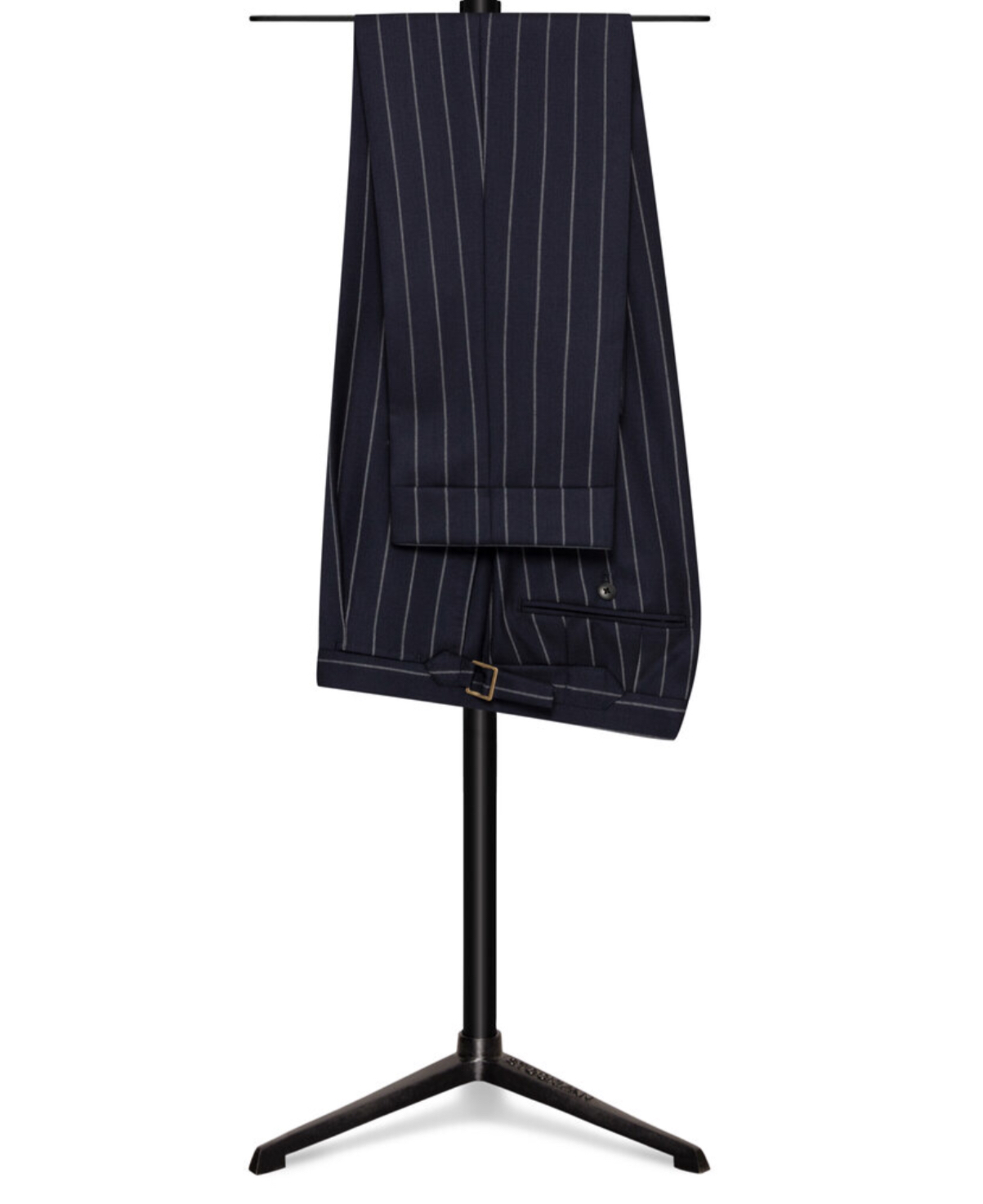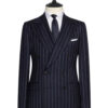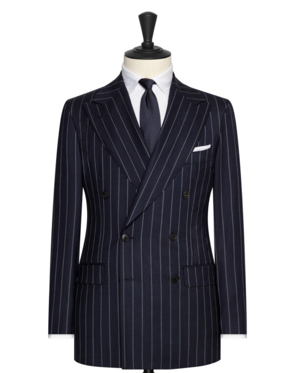 Beautiful light grey suit with light blue stripes, made of merino wool 200s Loro Piana Italian mill. Natural lining and buffalos horn buttons. Looks great with a bespoke light blue cotton shirt.
