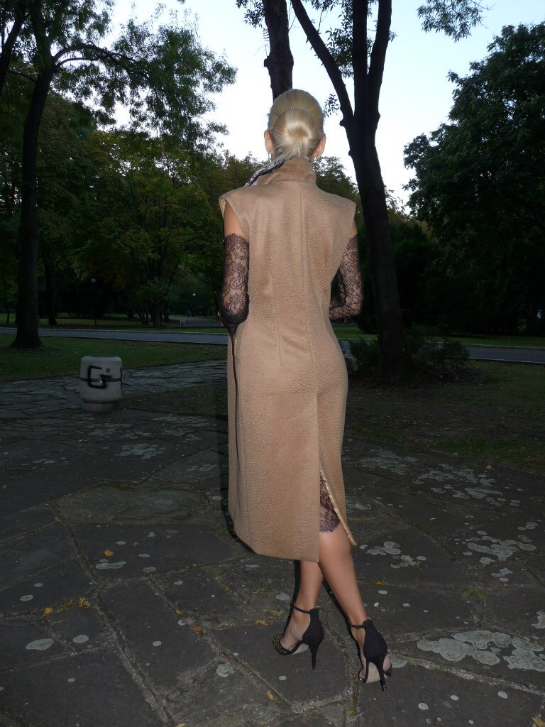 Classic french lace dress with a touch of golden Swarovski crystals and buttons. Golden silk lamé waist. Hand work.