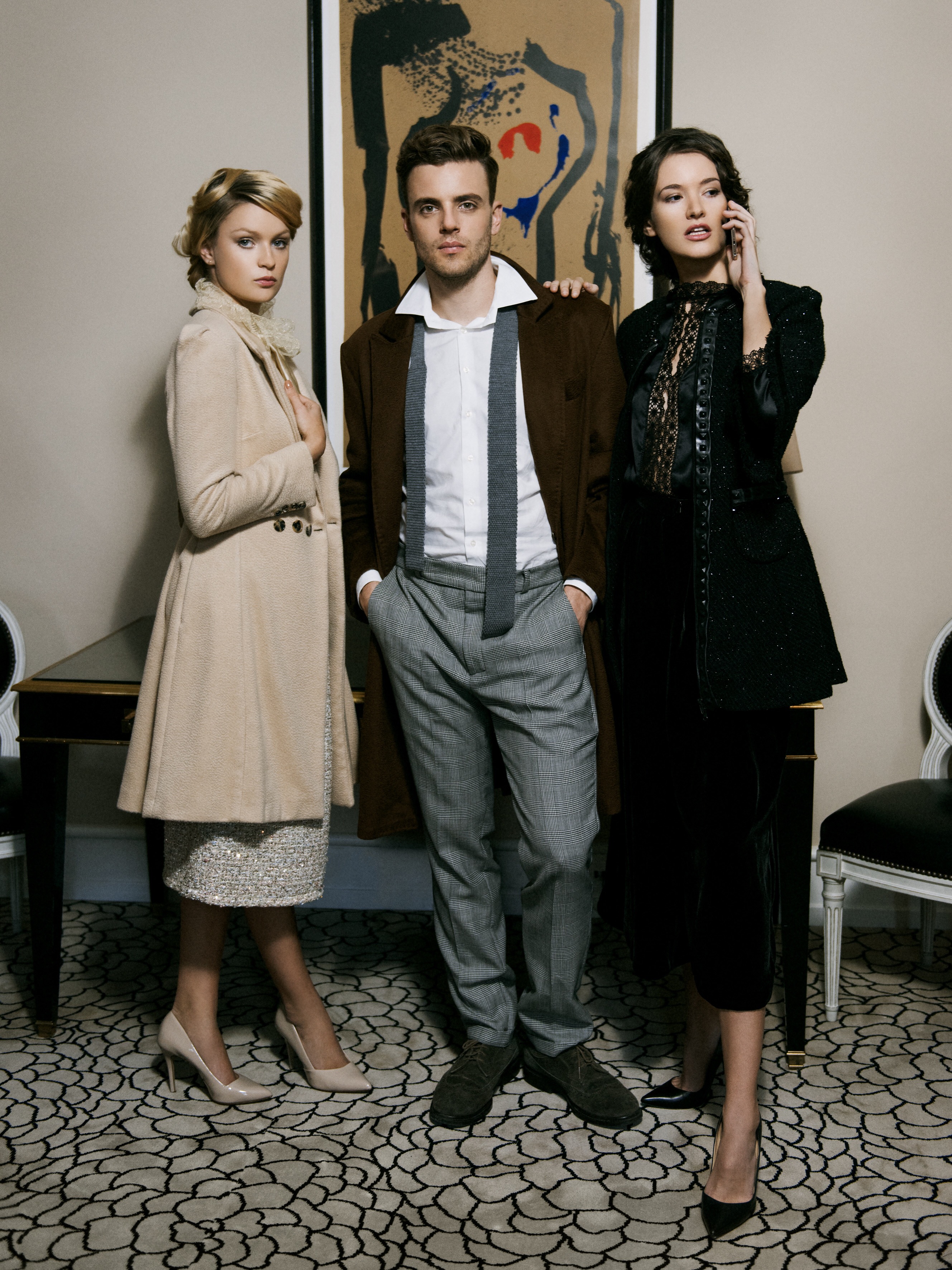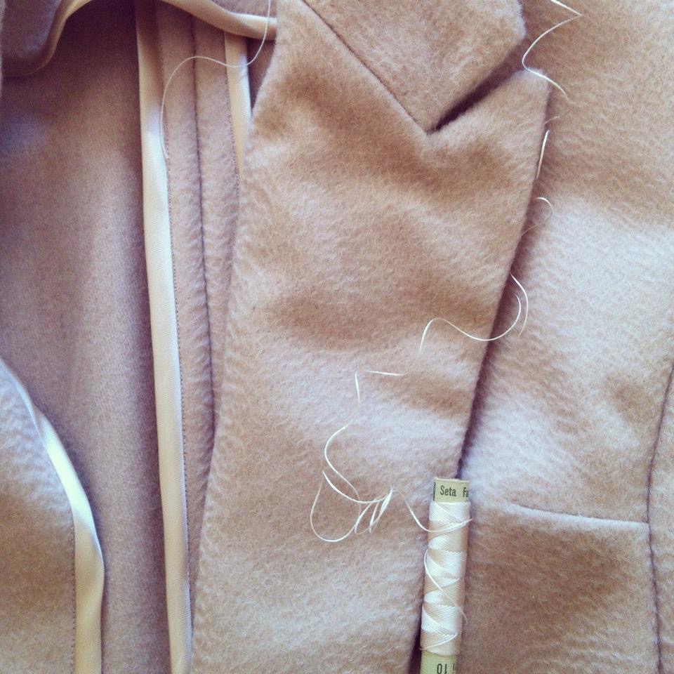 Winter coat in grey wool lace and pink wool crepe lining. Handcrafted, natural mother of pearl buttons and little Swarovski detail on the back. Made in Switzerland.