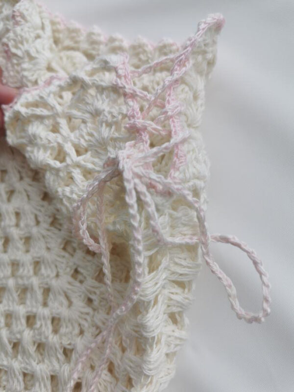 Hand knitted body with a crochet hook, togeather with Swarovski crystals. Sexy high leg cut and laces to tighten the body from behind. Hand wash.