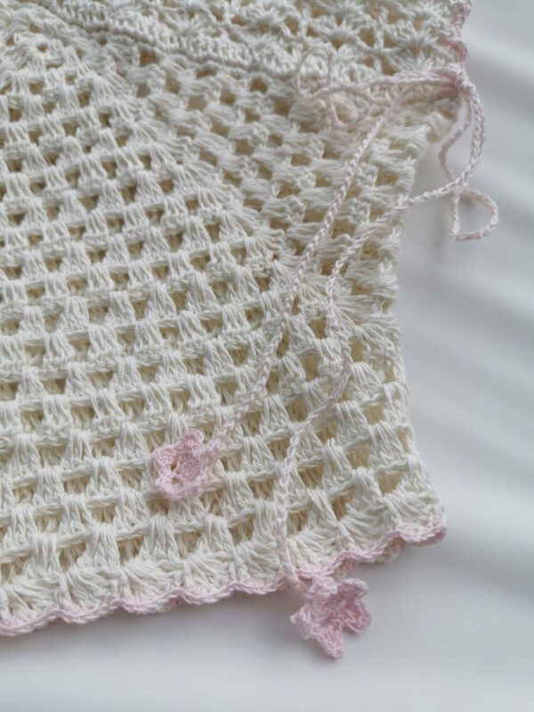 Knitted mini dress, made by hand with crochet hook, opened back and decorated with Swarovski crystals. Handcrafted in Zurich, Switzerland