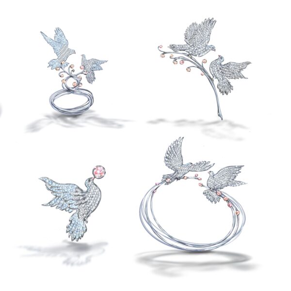 Inspiration of the ocean flowers – anemone and transparent deep sea cusk eel. Lovely colors combination with 4 ct pink natural spinel and 4ct tourmaline paraiba in assymetric design. 18k white and yellow gold, decorated with 118 natural diamonds. Earings move in a “life-like” way with 8 diamond chains and two independent parts connected with...