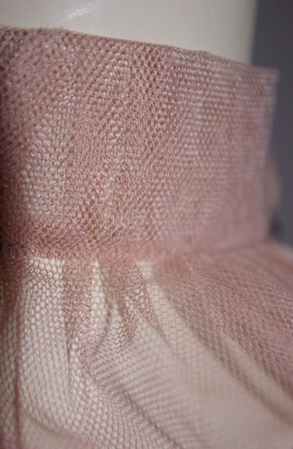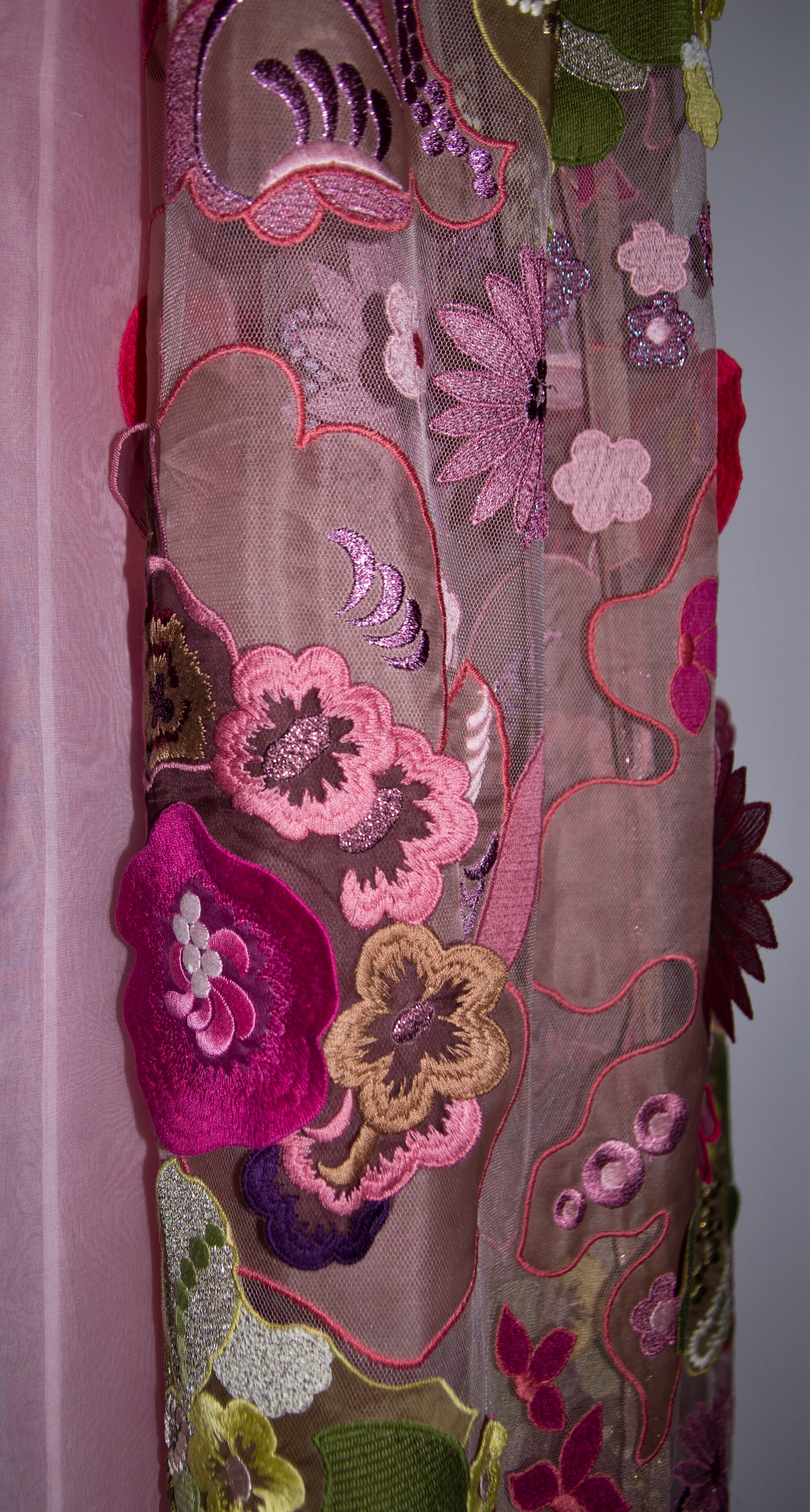 Two matching evening dresses. Light pink organza dress with flower silk tulle turtle neck dress. Handcrafted. Exclusive. Made in Switzerland.
