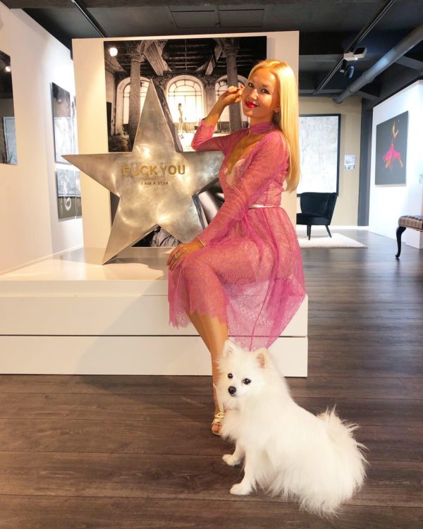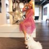 Two matching evening dresses. Light pink organza dress with flower silk tulle turtle neck dress. Handcrafted. Exclusive. Made in Switzerland. Dry clean only.