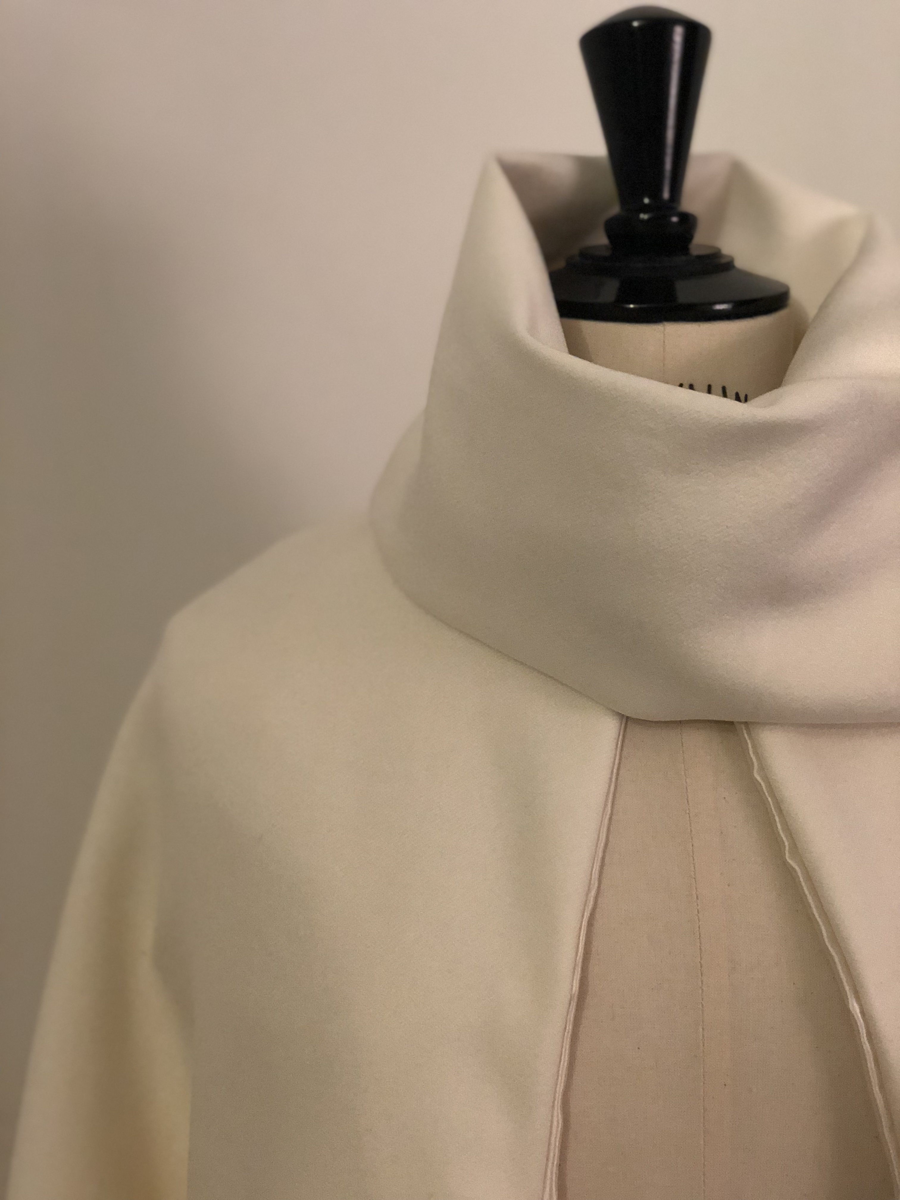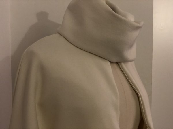 Its a dream pure cashmere coat. Silk crepe lining and mother of pearl buttons. Hand stitched with silk decorative cord. Dry clean only.