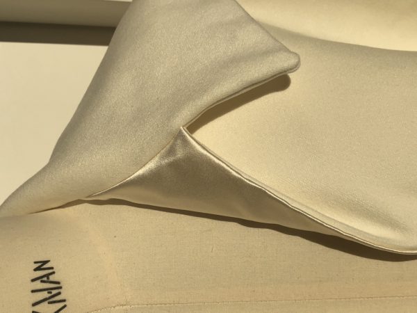 Evening silk cape to add a bit of a chic detail to your look. Cut in 45 degrees for flying effect while walking. Closure with golden crystal swarovski button. Made by hand in Zurich, Switzerland. Dry clean only.
