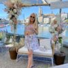 These heavenly blue, italian made, silky yarns are colored in a sustainable way, 100% bio, natural and handknitted to create this beautiful crystal dress which hugs your body like a glove, feels good to skin. Opened back and decorative ruffles in an asymmetric way. The dress is knitted with leed-free crystals swarovski. Belt with crystals...