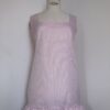 100% silk satin dress decorated with silk handcrafted buttons on the back of the skirt. Also decorated with a border of precious corded lace. Beautiful champagne color of the dress will match all colors in your wardrobe. Sexy opened back and silk wide belt. Dry clean only.