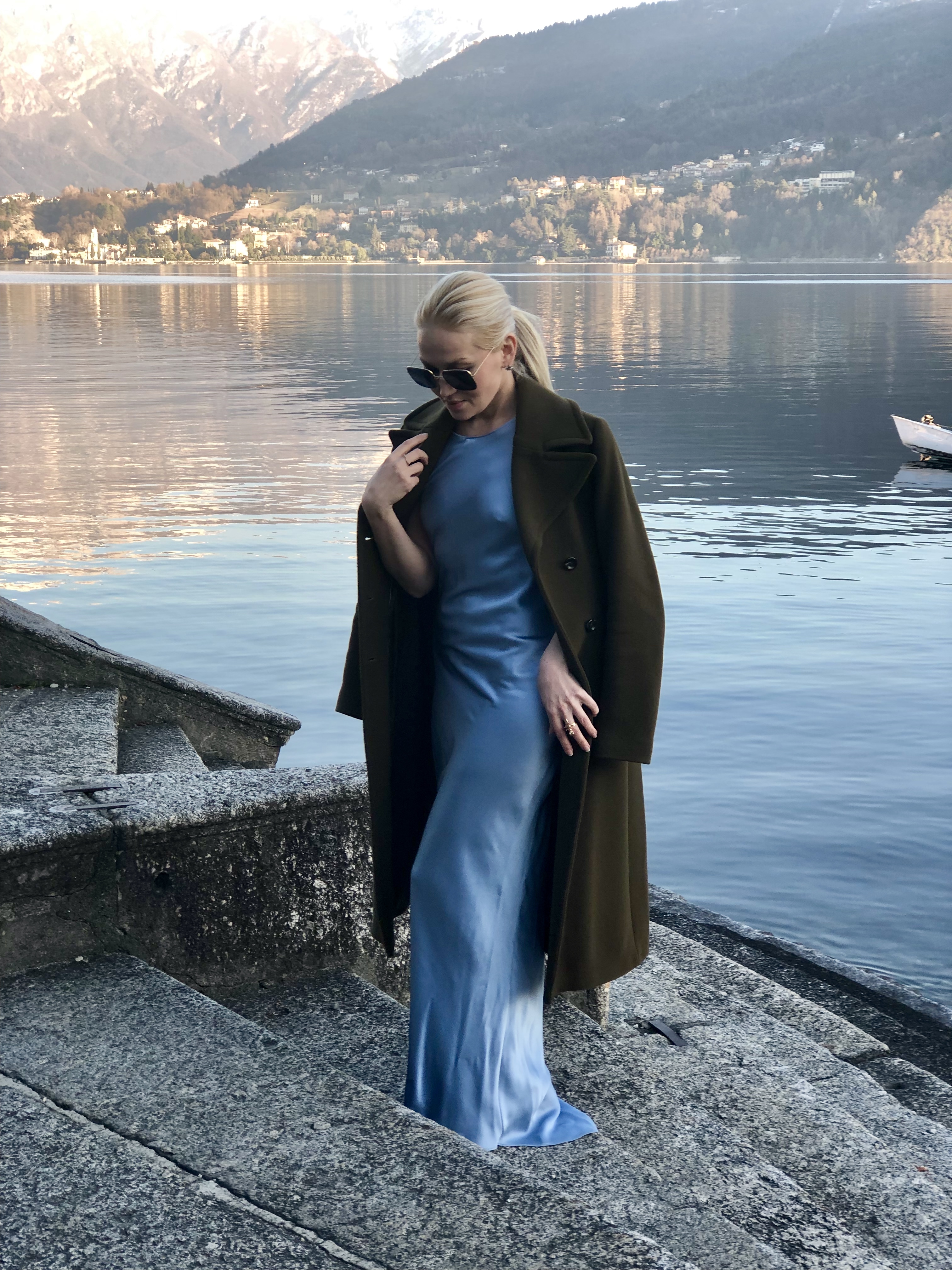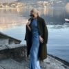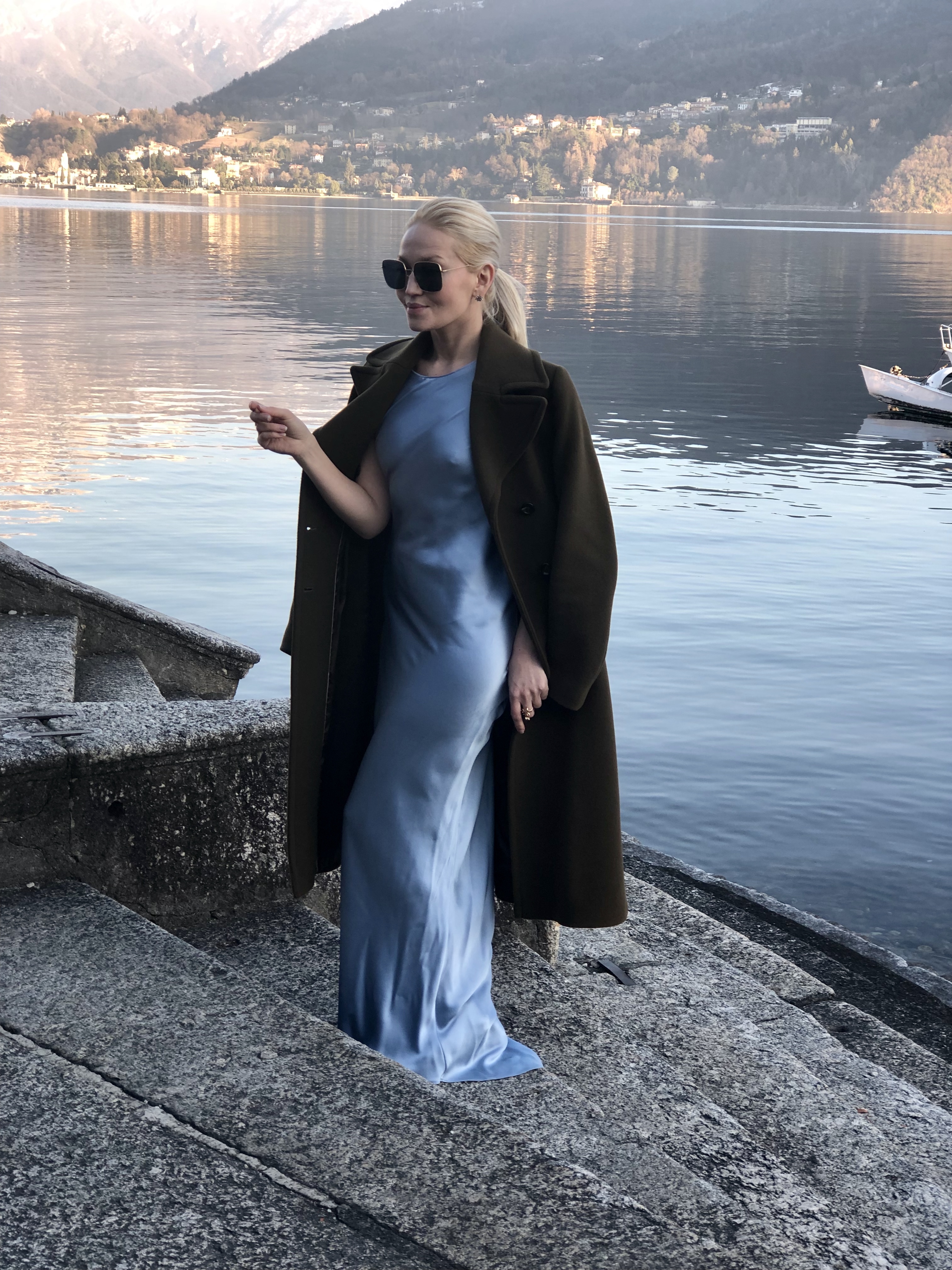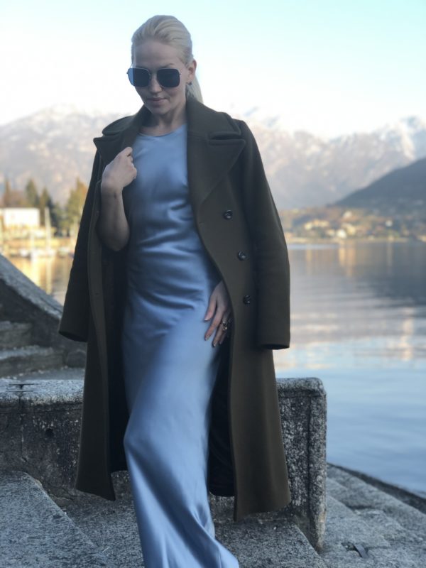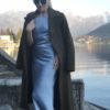 Bespoke 100% cashmere coat, silk satin lining and decorated with Swarovski crystals by hand. Handcrafred in Zurich, Switzerland