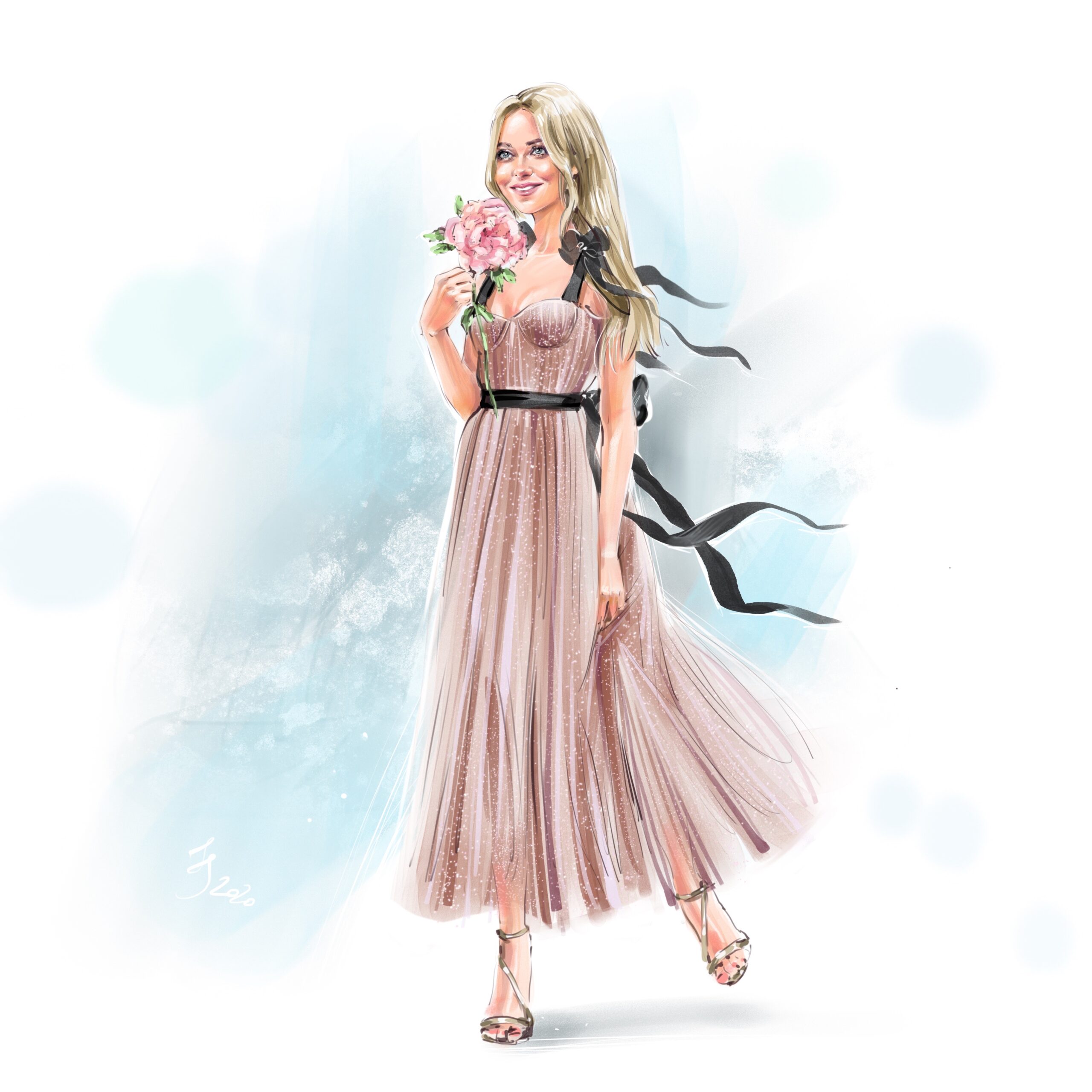 One of the kind. Made to measure silk crepe dress in champagne color. It is decorated with silk corded precious lace and handcrafted silk buttons. Our best seller this summer