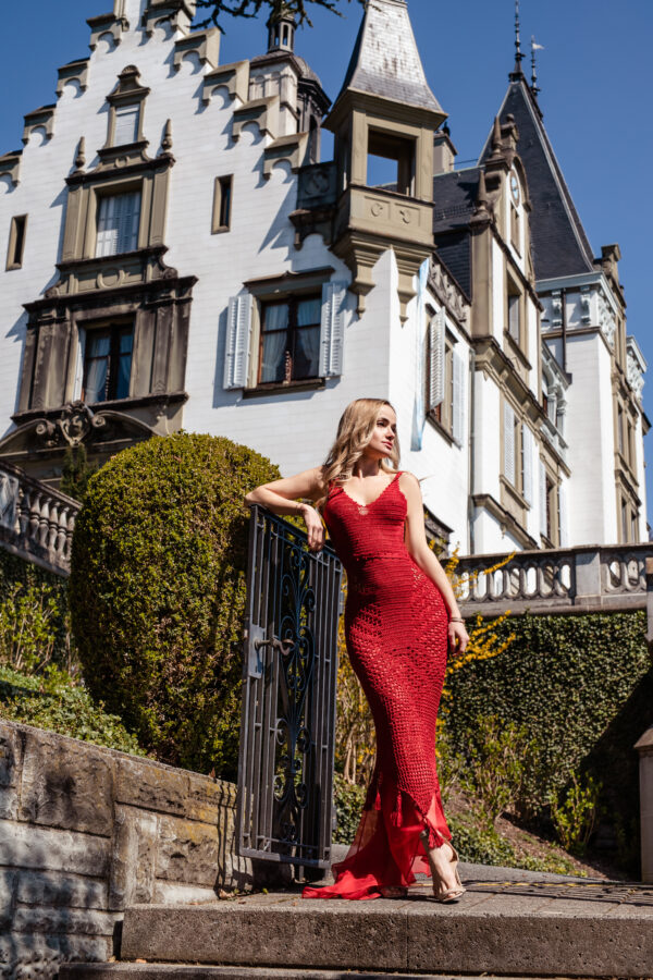 Living coral inspiration in a design of this hand-knitted, silk dress made with small crochet hook shows designer’s deep love to nature. Organic, natural, GOTs certified yarns are used to create this dress. It had a sensual opened back to show your feminine lines well. The dress is decorated with a Swarovski zirconium by hand....