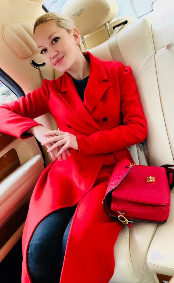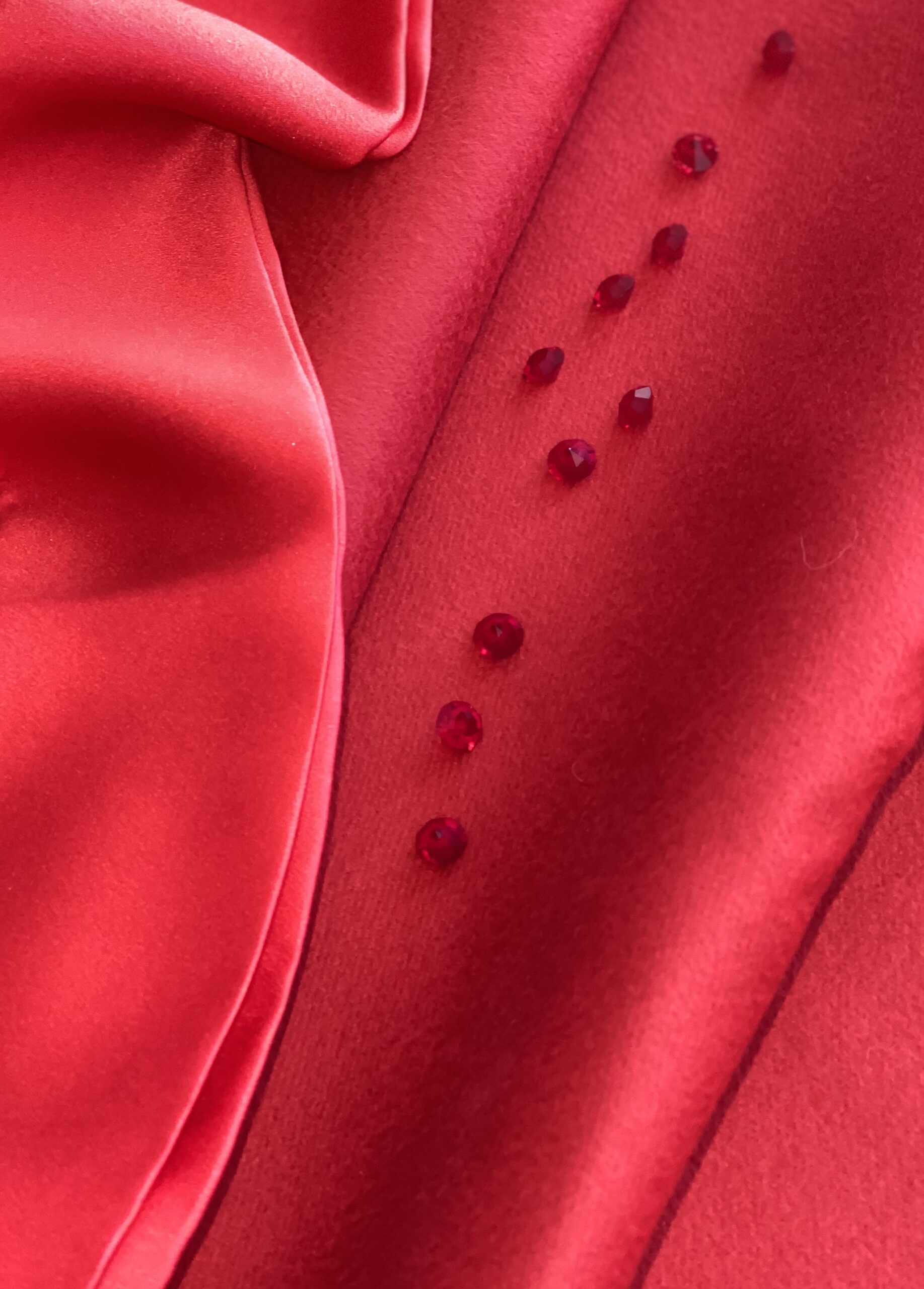 Bespoke 100% cashmere coat, silk satin lining and decorated with Swarovski crystals by hand. Handcrafred in Zurich, Switzerland