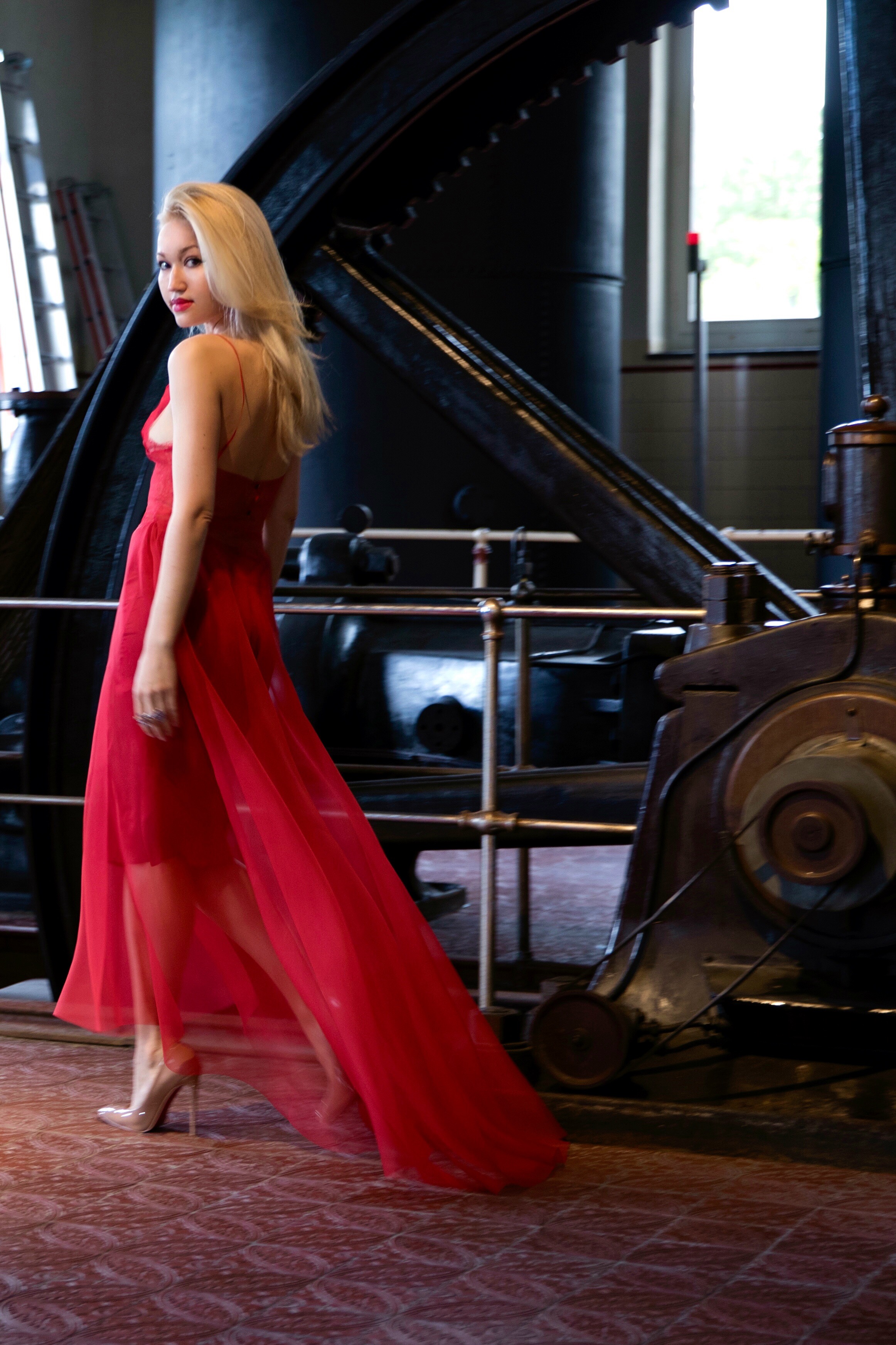 Red italian satin silk dress, natural 100 %. Opened back and thiny straps. All handcrafted as polka-dot with Swarovski crystals. Dry clean only.