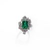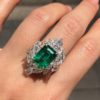 8ct beautiful baby bi-color natural, certified tourmaline in a 18k white gold ring with excellent quality 4 tapered baguette diamonds on two sides. Price on request.
