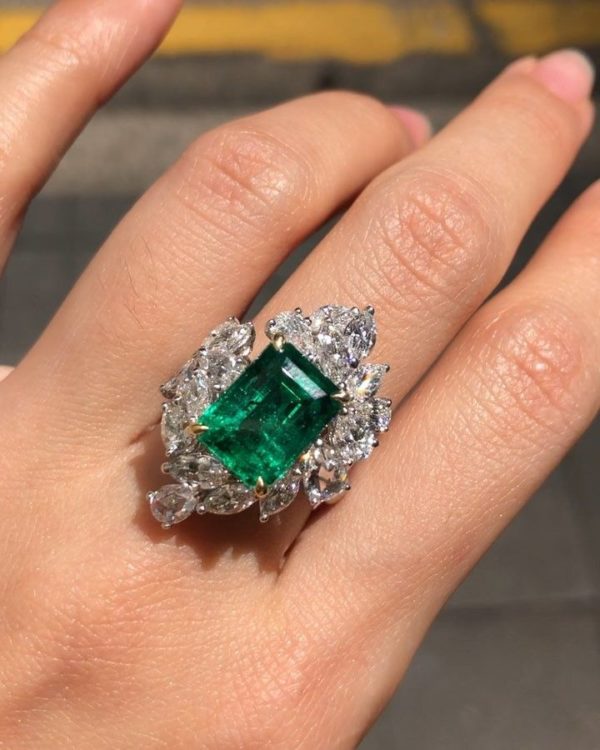 “The little Scarlet Flower” Known as “Alenkiy Tsvetochek” Inspiration comes from the fairytale written in 1857 by Russian author – Sergey Aksakov. Burma drop shape 3ct ruby in the heart of 18k gold flower ring , decorated with natural diamonds and rubies.
