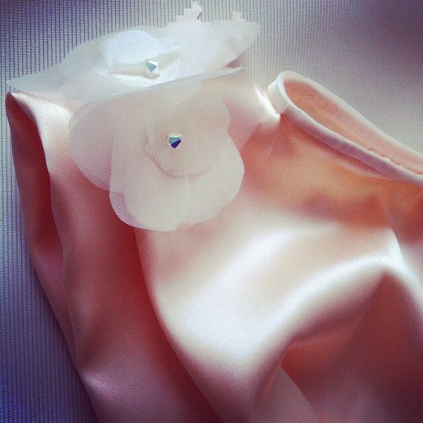 Silk crepe satin t-shirt with two faces with handcrafted silk button for decor on the back. Made in Zurich. Handmade. Dry clean only.