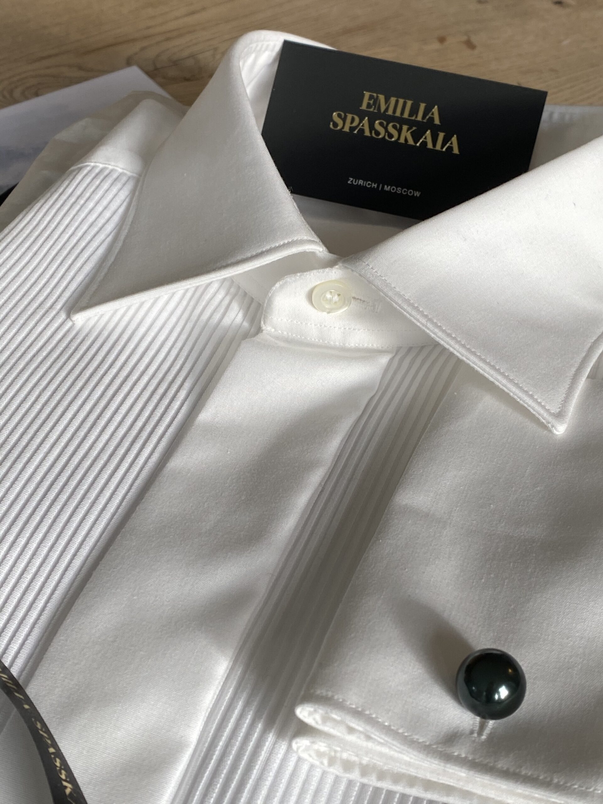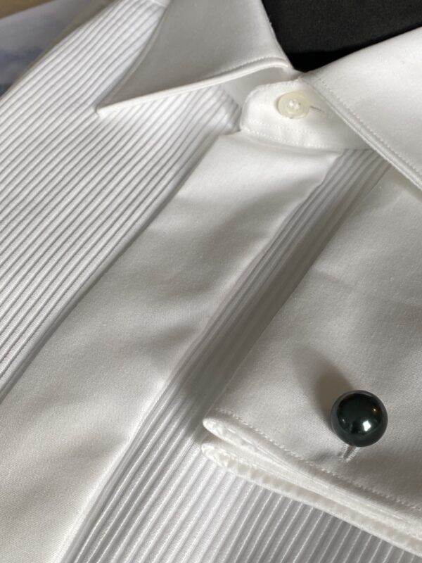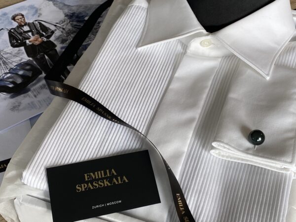 Tailored tuxedo shirt with plisse, made with swiss Alumo high quality cotton.