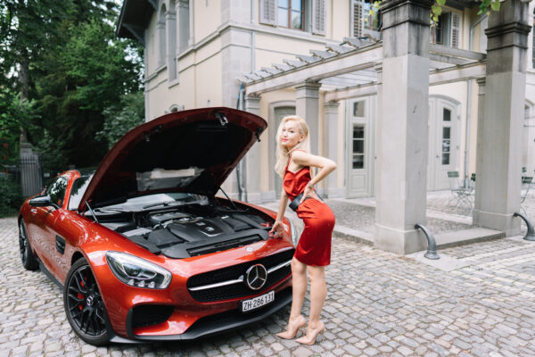Sustainable pure crepe silk dress. Silk buttons and belt. Decorated with precious french lace. Made in Switzerland. Dry clean only.