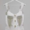 100% silk satin dress decorated with silk handcrafted buttons on the back of the skirt. Also decorated with a border of precious corded lace. Beautiful champagne color of the dress will match all colors in your wardrobe. Sexy opened back and silk wide belt. Dry clean only.